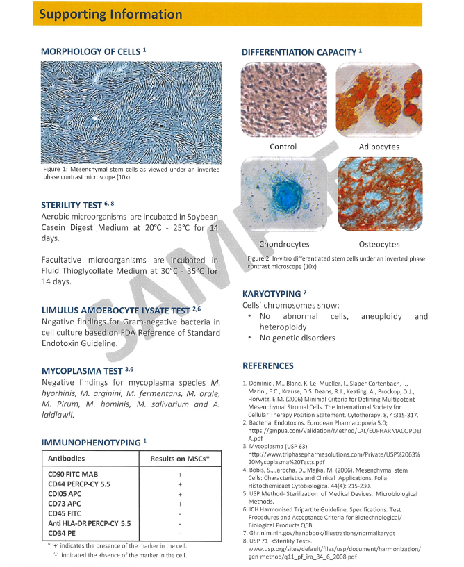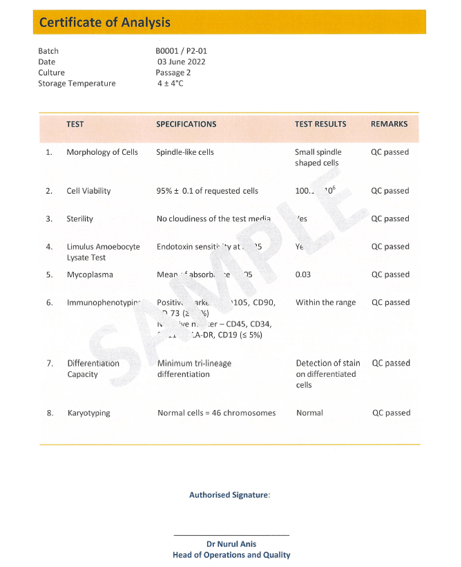 每一批WJ-MSC都附有独特的分析证书(COA):